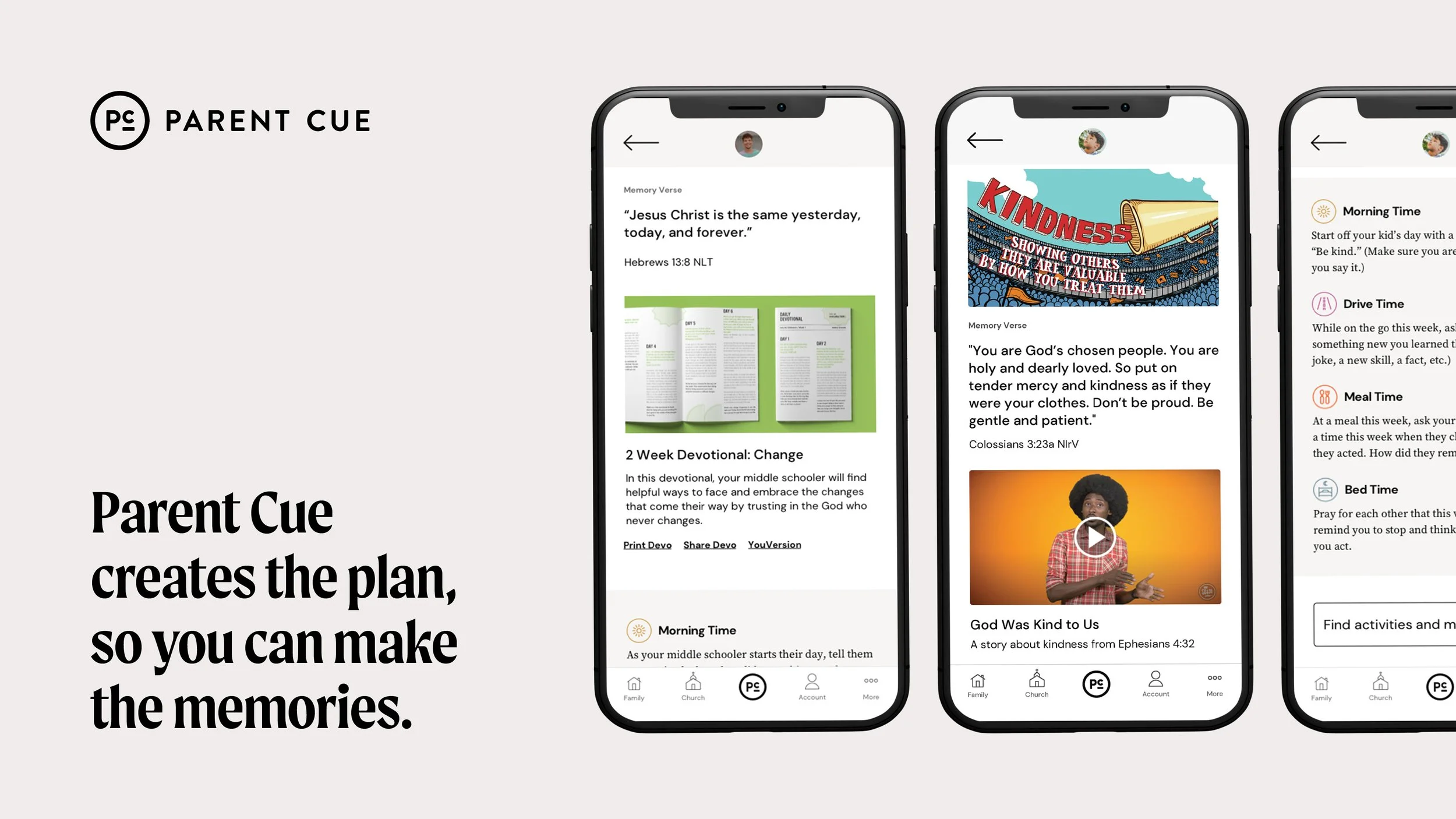 We invite you to check out an incredible tool called The Parent Cue App that will help us partner with you as you disciple your children through every phase of their growth and development! Just search “parent cue” in your mobile app store today.